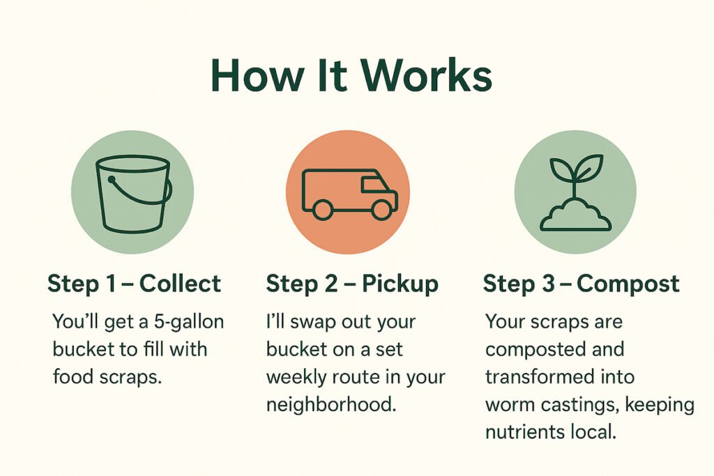 I run Herv’s Worms and Landscaping, and I’ve seen how much value food scraps have when they’re recycled into healthy soil. By starting this pickup service, I’m keeping food waste out of landfills and turning it into compost that supports local gardens.